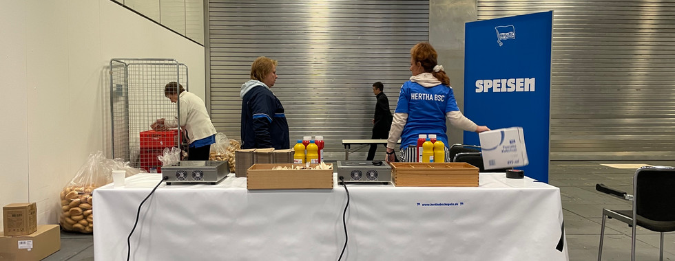 Währenddessen versorgen wir weiter die Mitglieder von HERTHA BSC mit leckerem Kuchen und Würstchen mit Salat.